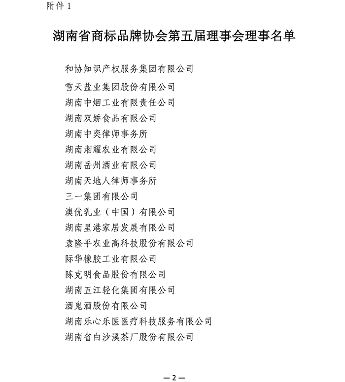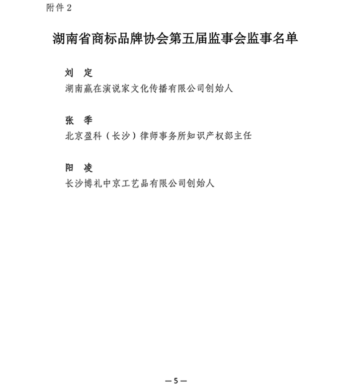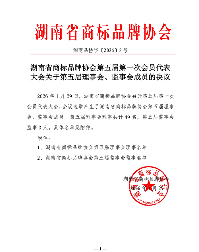 湖南省商标品牌协会第五届第一次会员代表大会关于第五届理事会、监事会成员的决议